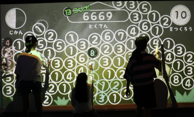 隣り合った数字を繋げて合計を10にする本アトラクションは、あたまとからだを使って数字と触れ合えることができ、制限時間の中で集中力と思考力を磨くことが出来ます。