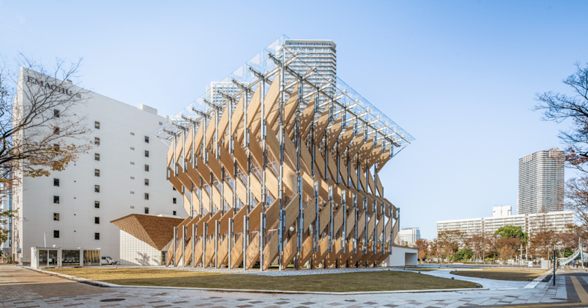 三菱地所が開発を手がけたCLT PARK HARUMIは、隈研吾建築都市設計事務所がデザイン監修を担い、岡山県真庭市産のCLT材を使用して東京・晴海に建築した、三菱地所として首都圏初(竣工時点)のCLT材展示施設です。